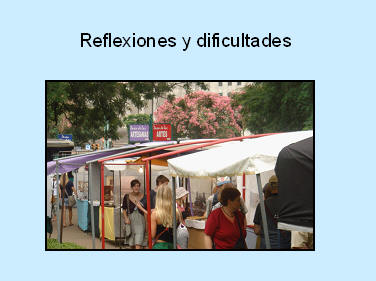 Muchos enfatizan la solidaridad colectiva (más allá de los subgrupos) y resaltan la importancia de la cohesión y el sentimiento comunitarios para que la feria funcione exitosamente. Otros, por el contrario, adjudican a la participación colectiva una situación de conflicto latente y permanente. Es en estos casos cuando deciden no participar de las asambleas, no interactuar con los pares, tomando una actitud más individualista. En las relaciones cotidianas estas percepciones se traducen en diferentes estrategias de relación con el otro.