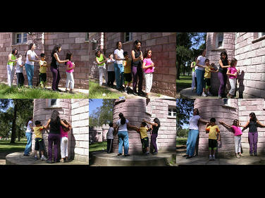 Empezamos, proponiendo a los niños que toquen la maqueta por fuera, englobando todo su volumen, primero con las manos y, después, usando inclusive sus brazos y la parte anterior de su cuerpo para abarcarlo mejor.