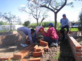 Intentando abordar el proyecto integralmente y teniendo en cuenta la deficiencia habitacional de los hogares de las mujeres que participarían del proceso se define trabajar con técnicas que posteriormente puedan ser trasladadas para futuras mejoras de sus viviendas. Debido a esto y los escasos recursos de financiación se decide trabajar con elementos donados o comprados a bajo costo buscando optimizarlos como elementos constructivos. Bloques de hormigón de descarte, chapa de segunda clavadura y aberturas de madera a ser restauradas.
